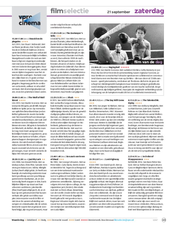 Registreer een account en gebruik je VPRO Gids abonnement ook op de website. Beoordeel films op VPRO Cinema en laat je waarschuwen wanneer je favoriete films op televisie zijn. Meer weten?